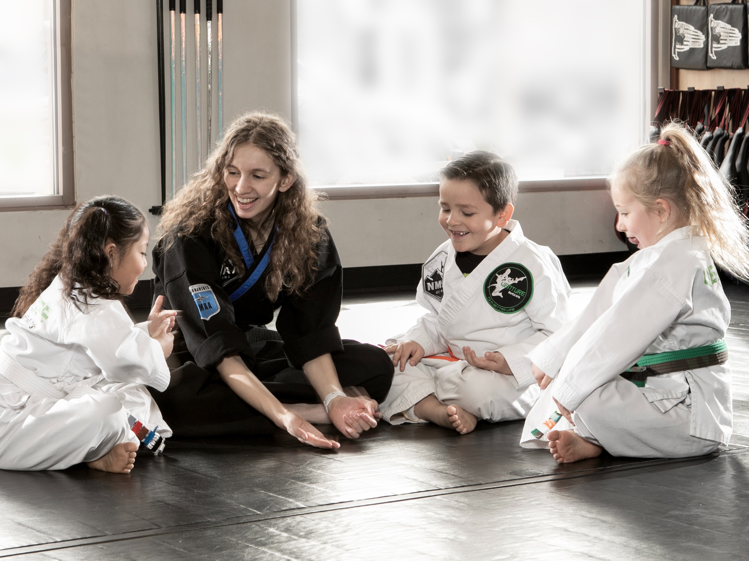 Develop strong stances and basic kicks including front, round, and sidekicks. Build confidence through teamwork, movement, and goal-based games.